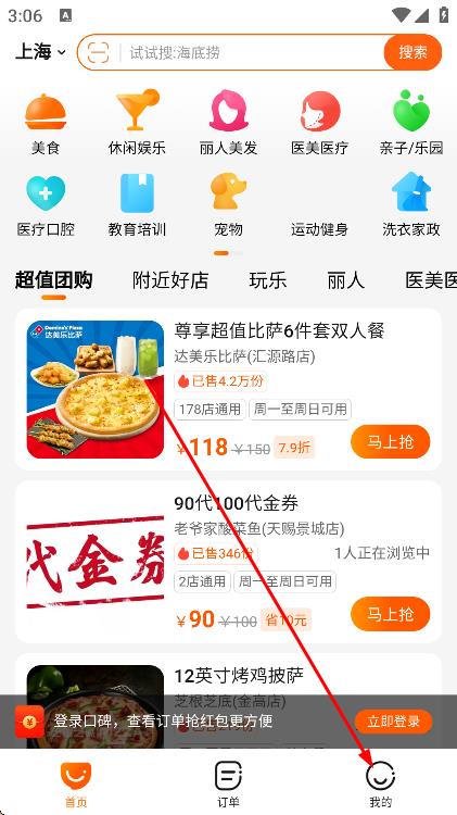 1、打开口碑外卖app,点击页面右下角的我的选项。