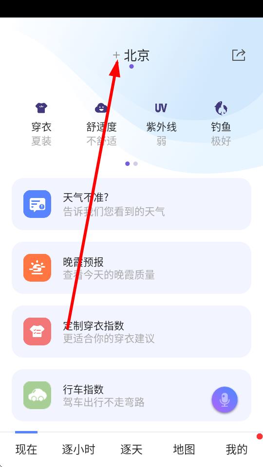 1、在天气应用首页点击上方+位置进入城市管理页面。