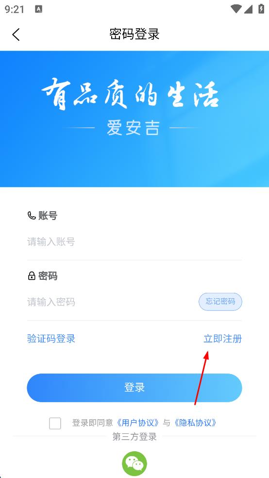 3、在登录页面,找到“立即注册”按钮并点击,进入注册界面。