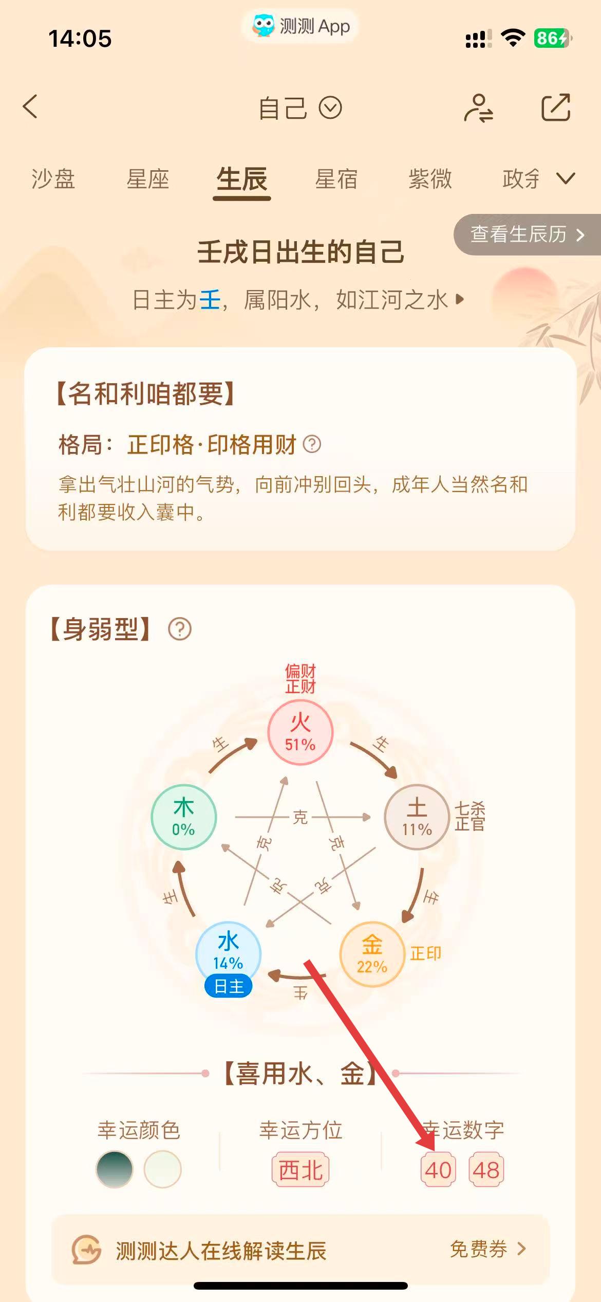 4、下滑页面,即可在幸运数字处,看到对应的幸运数字。