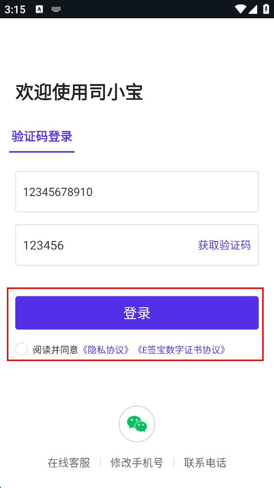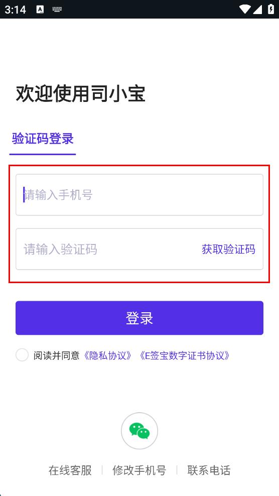 3、输入收到的验证码,勾选阅读并同意隐私协议,E签宝数字证书协议。