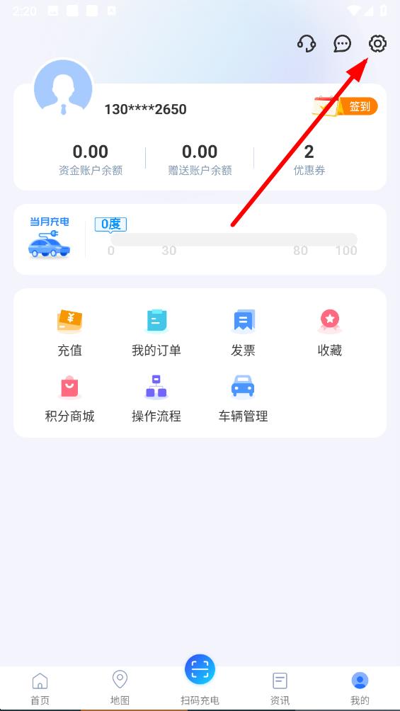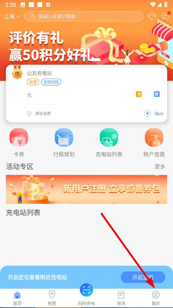 1、打开充电圈app,点击底部导航栏中的我的选项,进入个人相关页面。