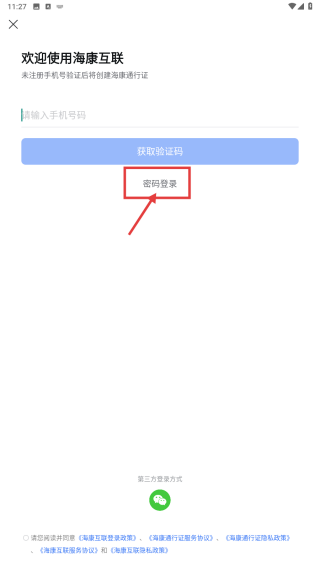 3、在登录页面,点击密码登录选项,进入密码登录页。