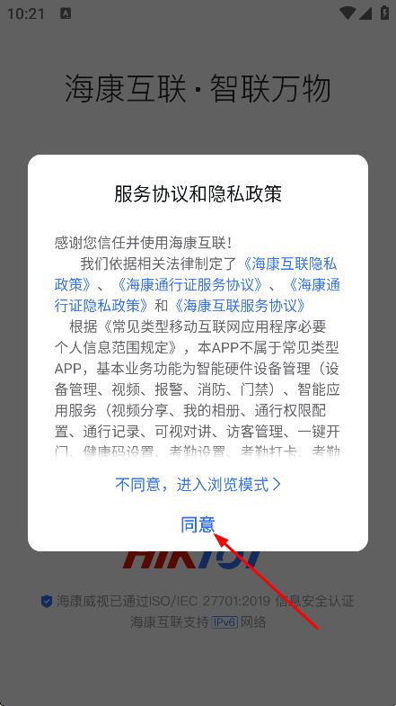 1、在服务协议和隐私政策弹窗中,点击同意,进入软件。