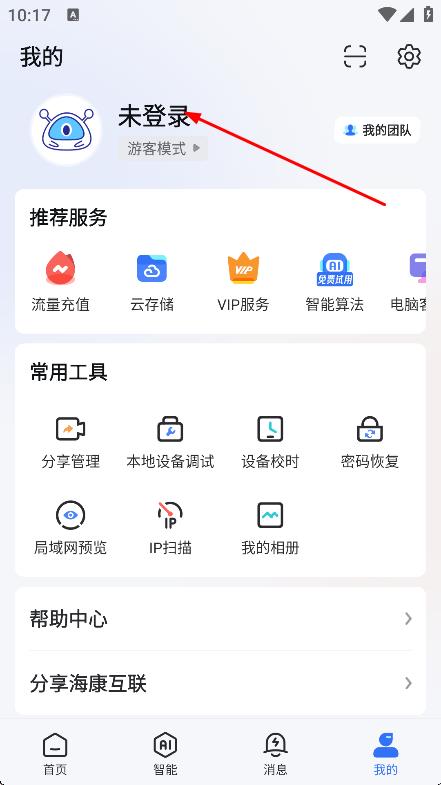 2、在海康威视主页面,点击我的,进入我的页面。