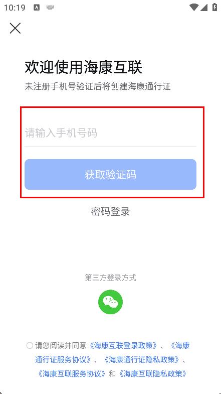 4、输入手机号码,点击获取验证码,进行短信验证码登录操作。