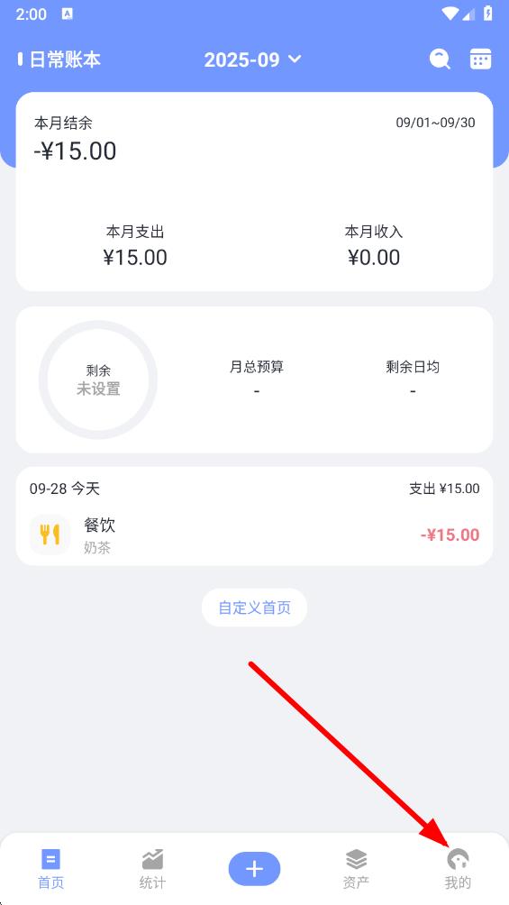 1、打开一羽记账app,点击底部导航栏中的我的选项。