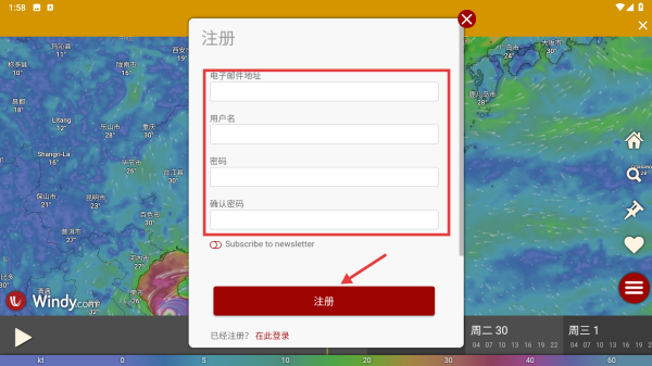 4、在注册页面填写电子邮件地址、用户名、密码等信息,点击注册按钮完成账号注册。