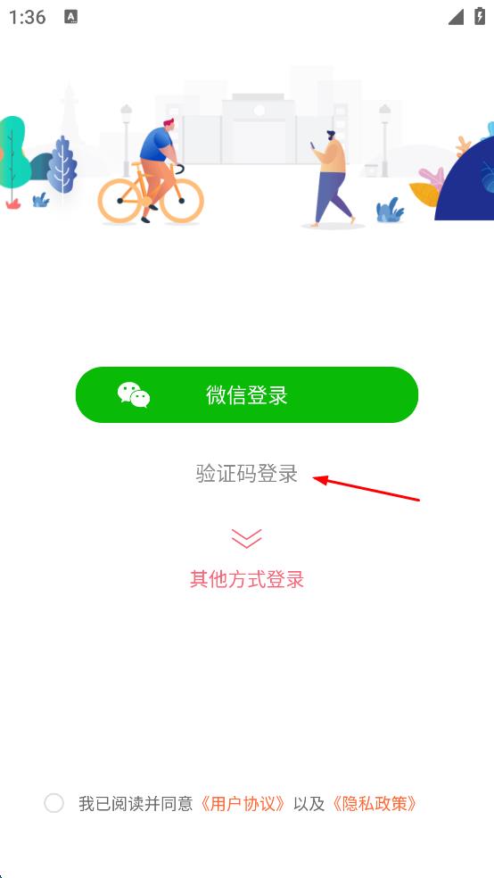 2、在登录选择页面,点击“验证码登录”,进入手机号和验证码输入页面。