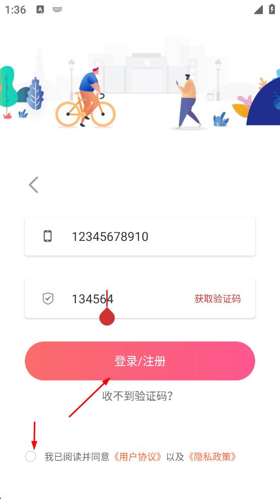 4、勾选我已阅读并同意用户协议以及隐私政策,点击“登录/注册”按钮完成登录。