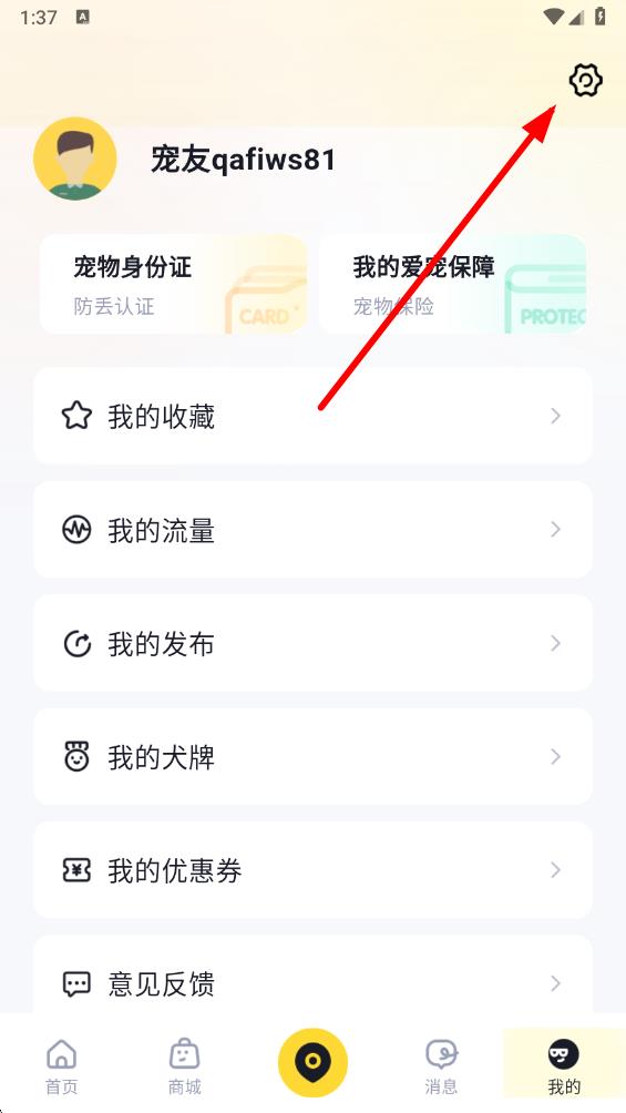 2、在我的页面,点击右上角的设置图标,进入设置界面。