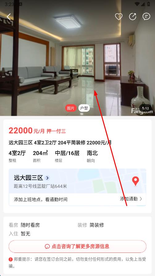 3、在详情页中可以查看房屋的照片、户型、租金、面积、楼层、朝向等信息。