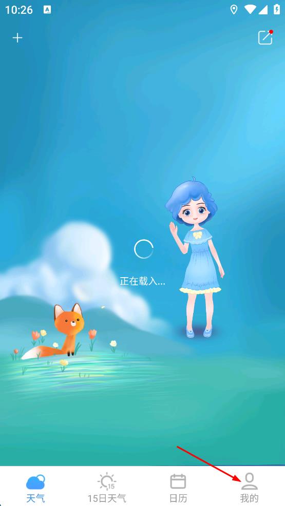 2、进入天气页面,等待载入完成后,点击右下角我的选项,进入个人页面。