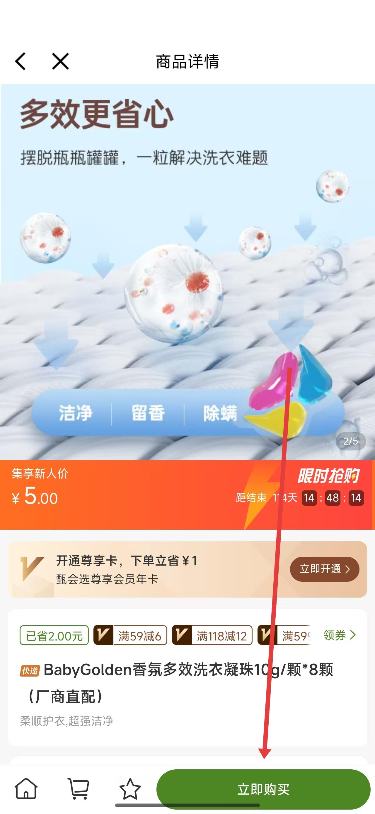 3、进入到商品详情页面后,可以点击下方的立即购买按钮进行购买操作。