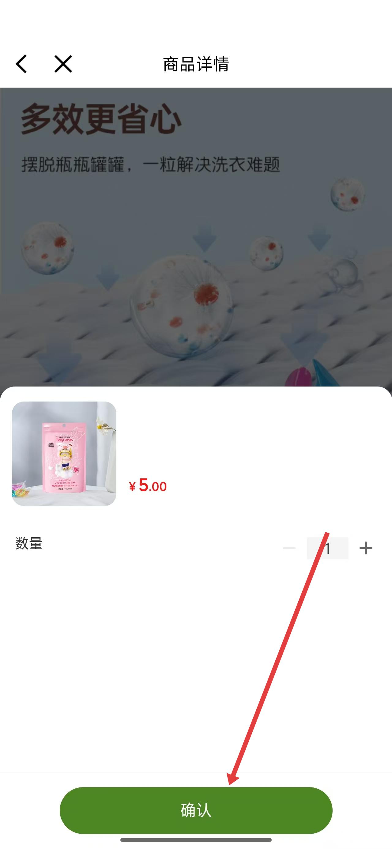 4、在选择好商品数量后,点击确定按钮进行购买。