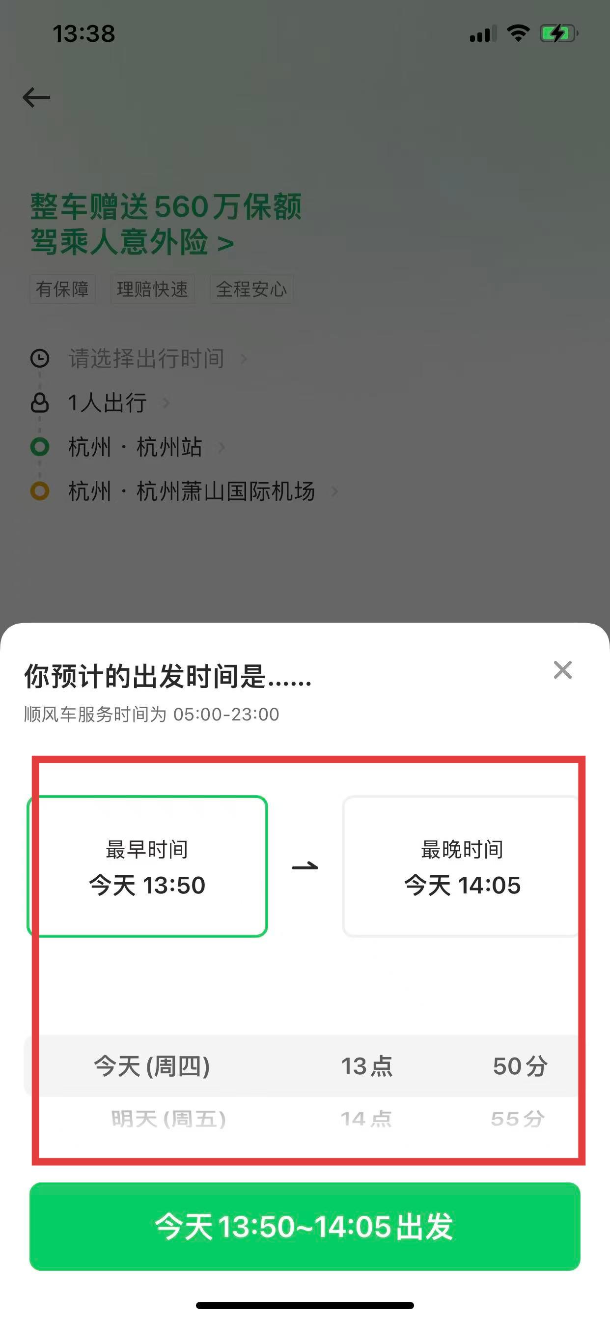 3、选择出行时间,选择您预计的出发时间段。