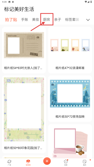 2、在贴纸分类页面,点击厨房标签,浏览厨房类贴纸商品列表。