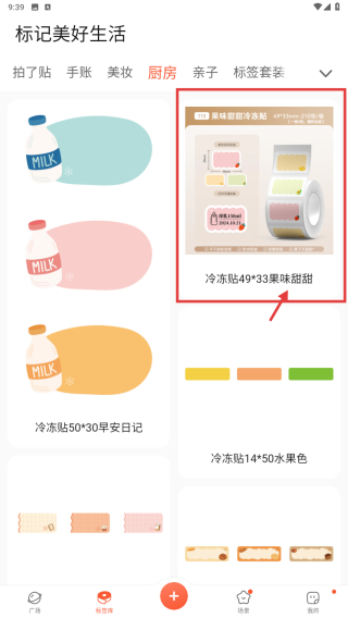 3、在厨房贴纸商品列表中,找到果味甜甜冷冻贴条目,点击进入商品详情页。