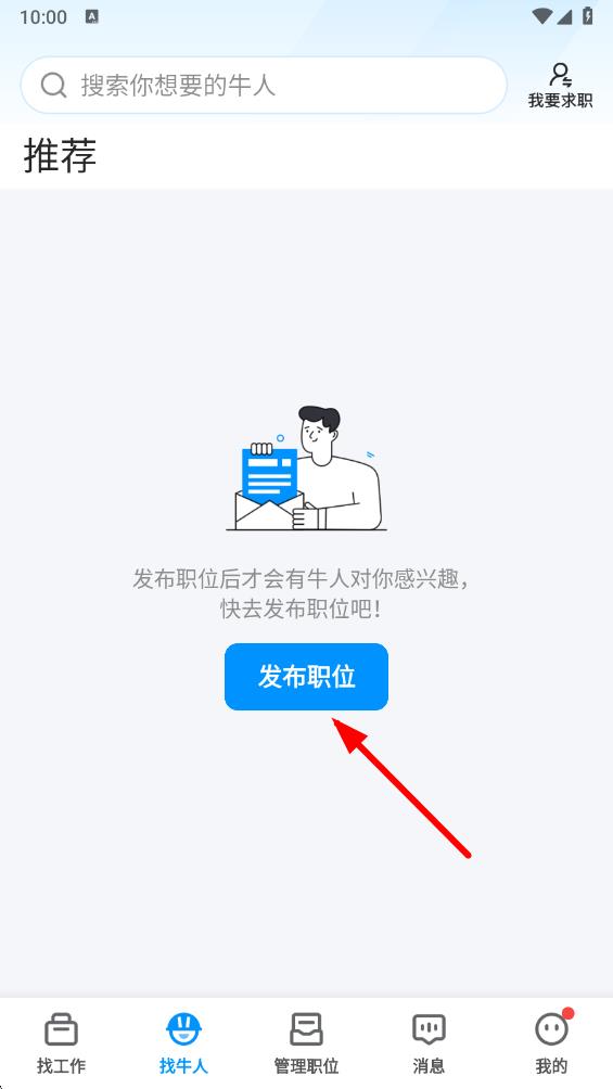 1、打开鱼泡网APP,在首页点击发布职位按钮,进入发布职位页面。