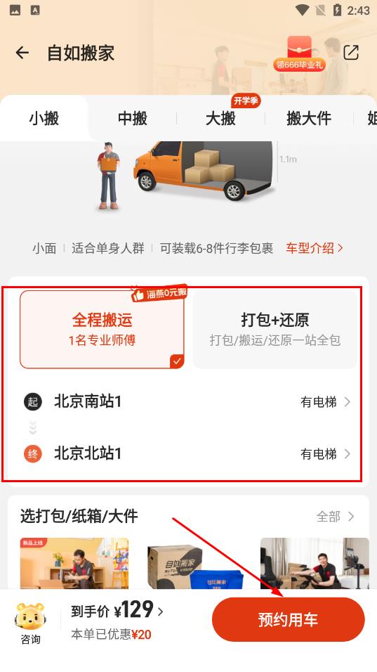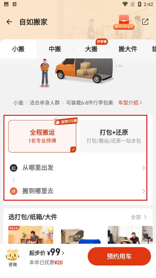 2.每个人都可以来预约自如的高品质的搬家啦。