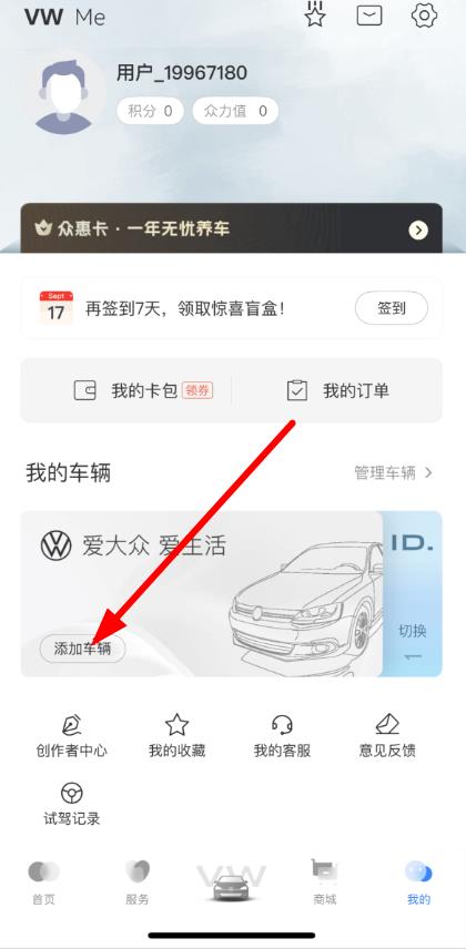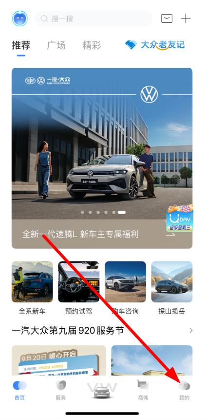 1、打开上汽大众APP,点击首页下方导航栏中的我的进入个人中心页面。
