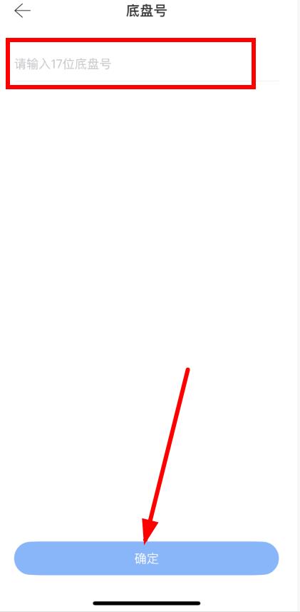 4、在底盘号输入框中,输入17位底盘号,点击确定,即可完成车辆绑定。