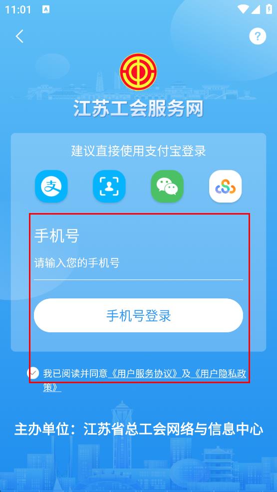 4、在登录页面输入手机号,勾选我已阅读并同意相关协议,点击手机号登录按钮完成登录。