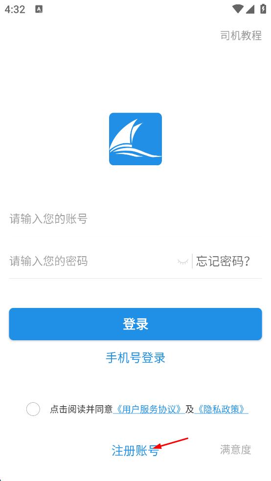 2、进入登录页面,点击注册账号选项,进入注册页面。