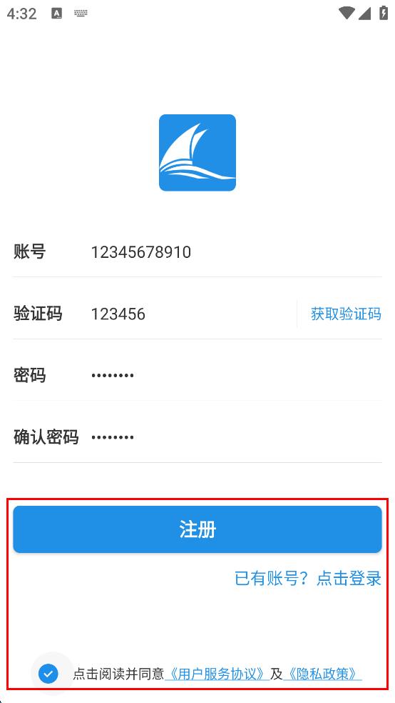 4、勾选阅读并同意相关协议,点击注册按钮完成注册。