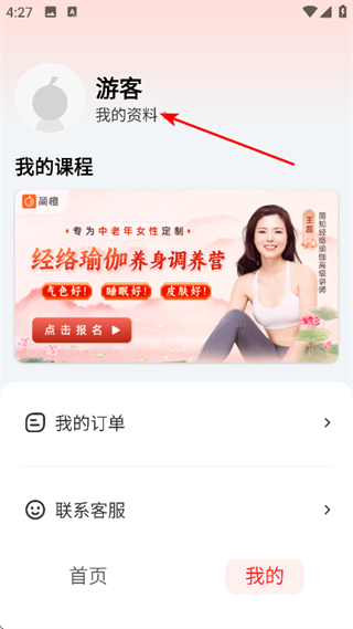3、在个人页面,点击我的资料,进入资料页面。