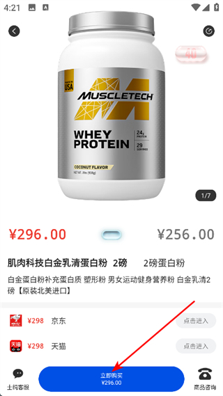 3、进入商品详情页面后,点击立即购买,进入订单确认页面。