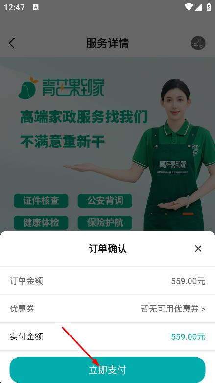 4、在订单确认页面,点击立即支付,完成服务购买。