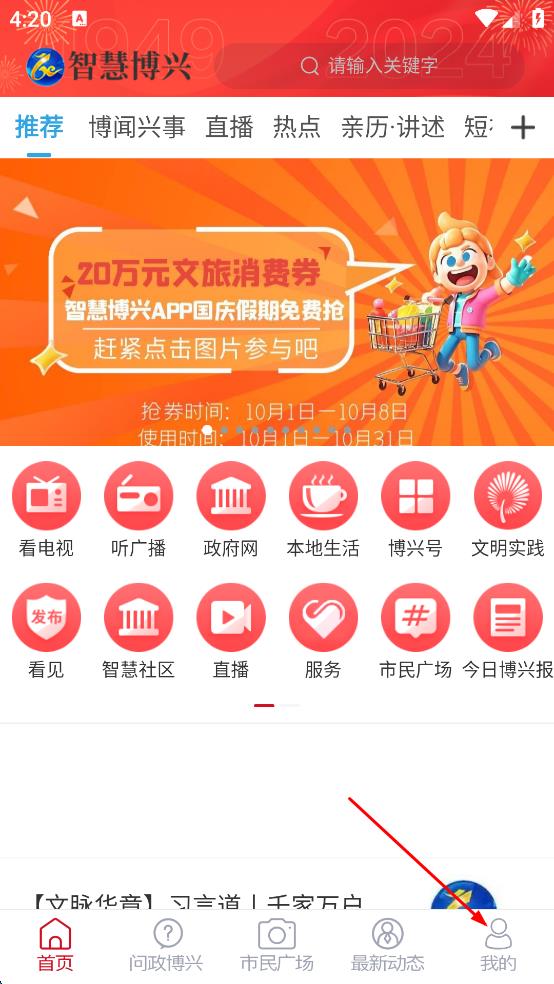 2、进入智慧博兴APP主界面,点击右下角我的选项,进入个人相关页面。