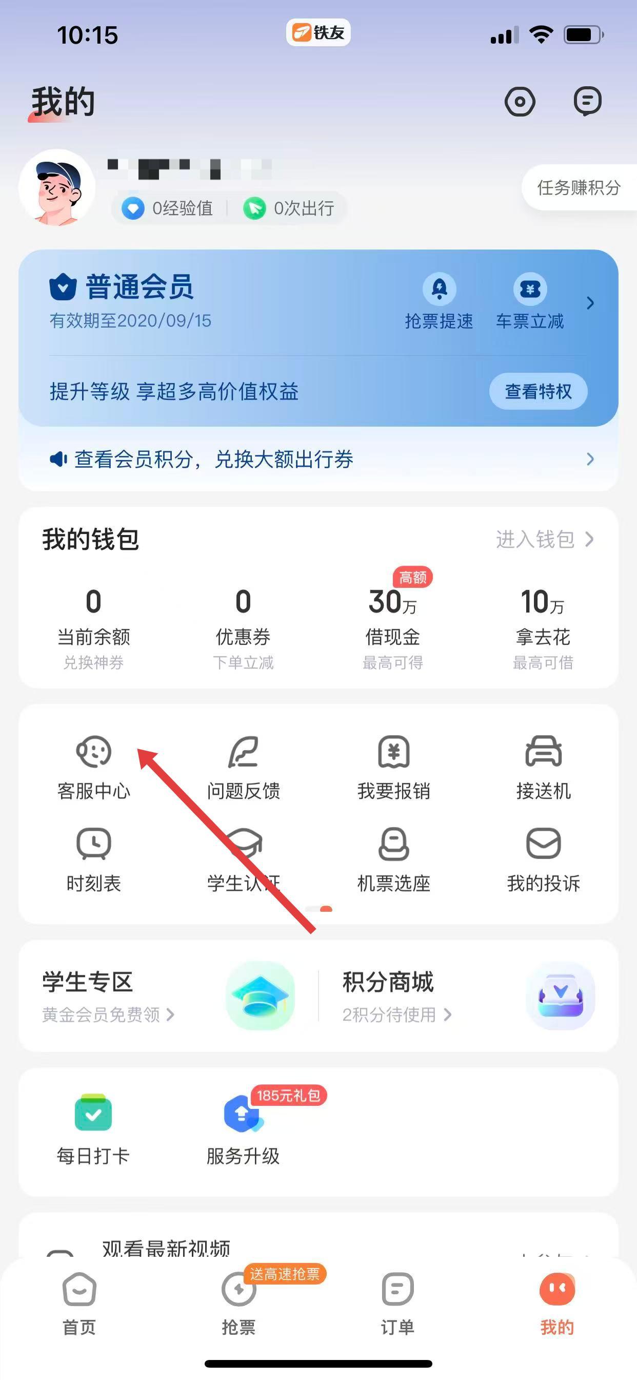 3、在客服中心页面,点击火车图标,进入铁友火车票在线咨询界面。