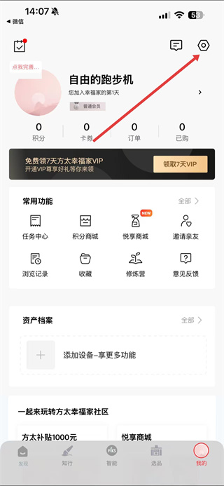 1、在个人页面右上角,点击设置图标,进入设置界面。