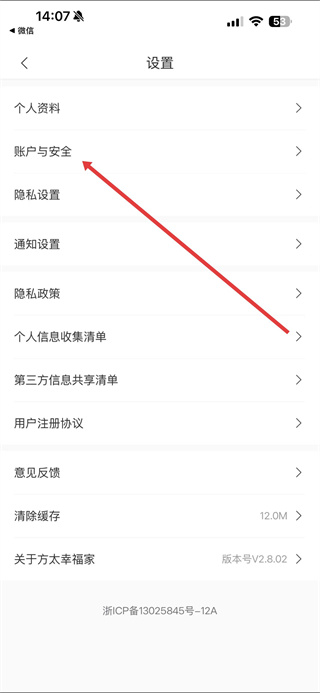 2、在设置界面里,点击账户与安全选项,进入账户与安全页面。
