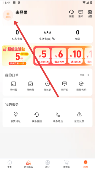 2、在进入到我的主页中,可以点击上方头像区域,准备进行登录操作。