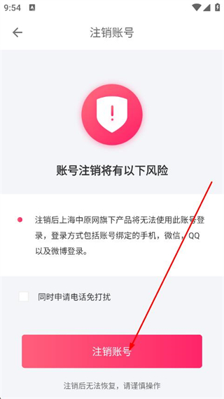 4、在注销账号页面,点击注销账号,按照提示完成注销操作。