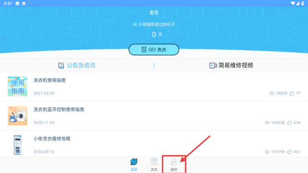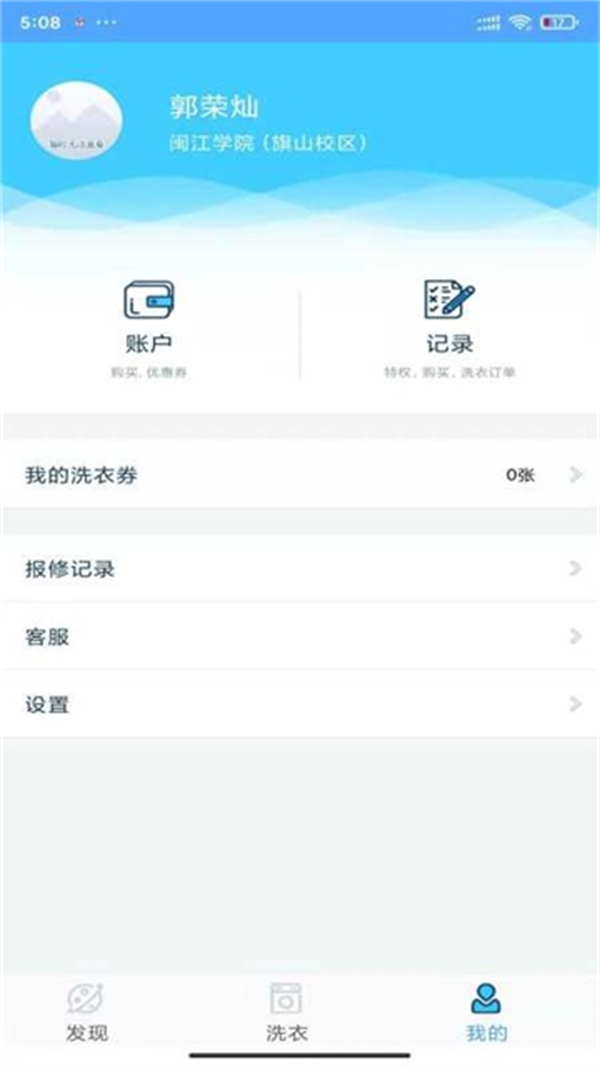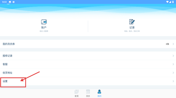 1、打开洗衣服务类应用,点击底部我的选项,进入个人中心页面。