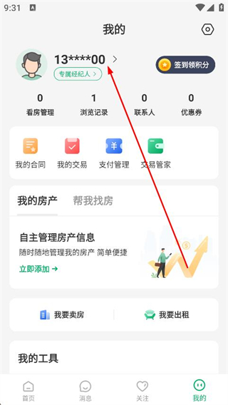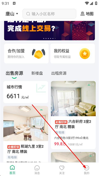 1、打开千家找房,点击底部导航栏最右侧我的选项。