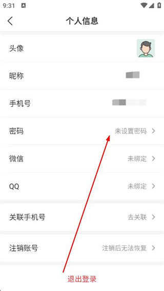3、在个人信息页面,找到密码选项并点击。