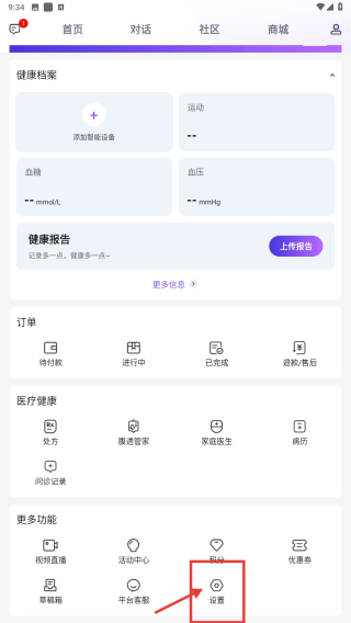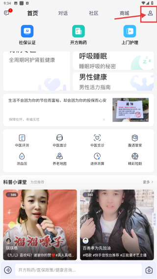 1、打开医疗健康类应用,点击右上角个人中心图标,进入个人中心页面。