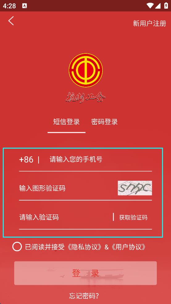 3、在登录相关页面输入手机号、图形验证码,点击获取验证码,输入验证码,勾选已阅读并接受相关协议。