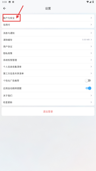 4、在账号安全界面,点击注销账号选项,进行账号注销操作。