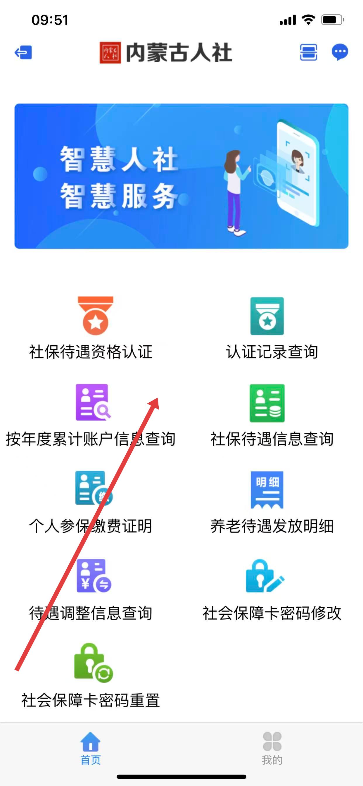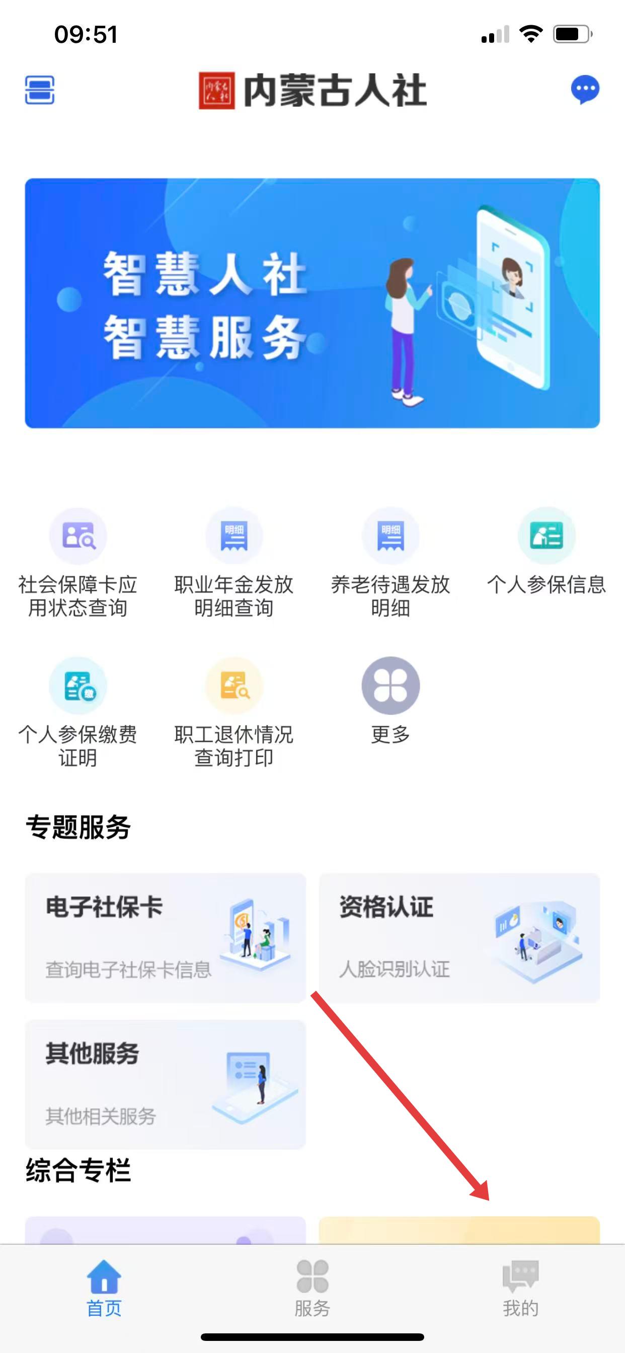 1、打开内蒙古人社App,点击底部导航栏中的我的选项。