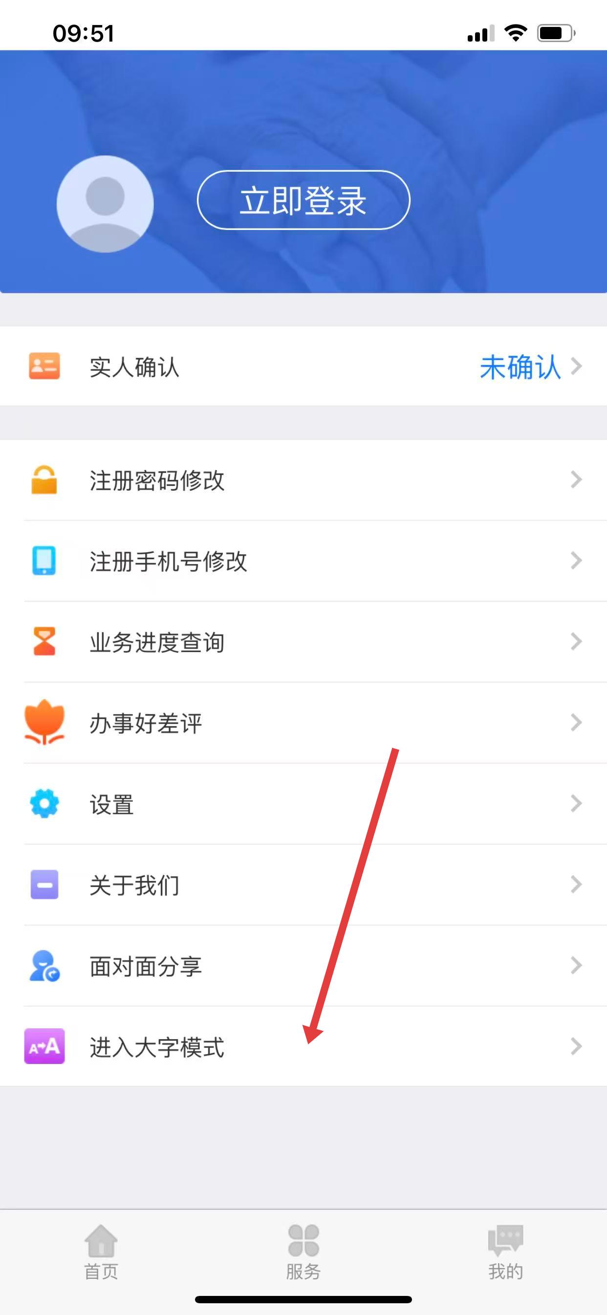 2、在“我的”页面中,找到并点击进入大字模式选项,即可切换到大字模式。