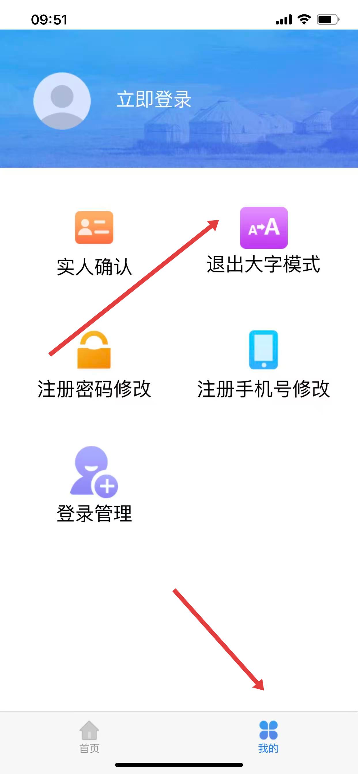 4、如果想要退出大字模式,点击底部导航栏的我的,点击退出大字模式即可。
