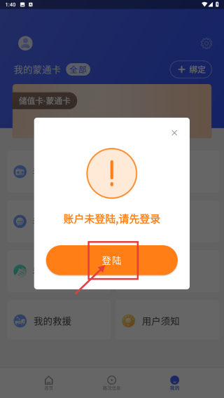 3、在弹窗中点击登陆按钮,进入账号登录页面。