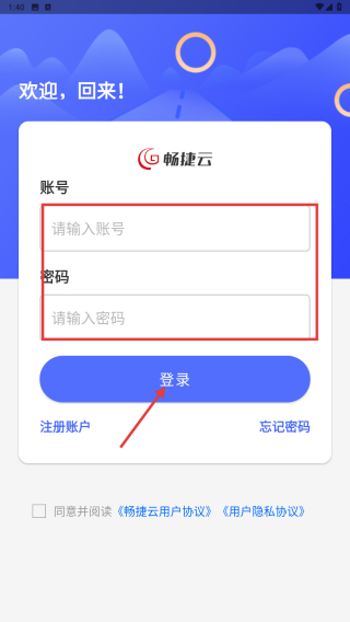4、输入账号和密码,勾选协议后点击登录按钮,完成账号登录。