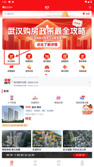 1、打开房产类应用,点击首页此汉买房入口,进入区域房产服务页面。